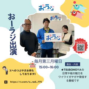 坪野谷紙業は、毎月第3月曜日15:00〜16:00、FMプラプラ「おーラジ」に出演しています。