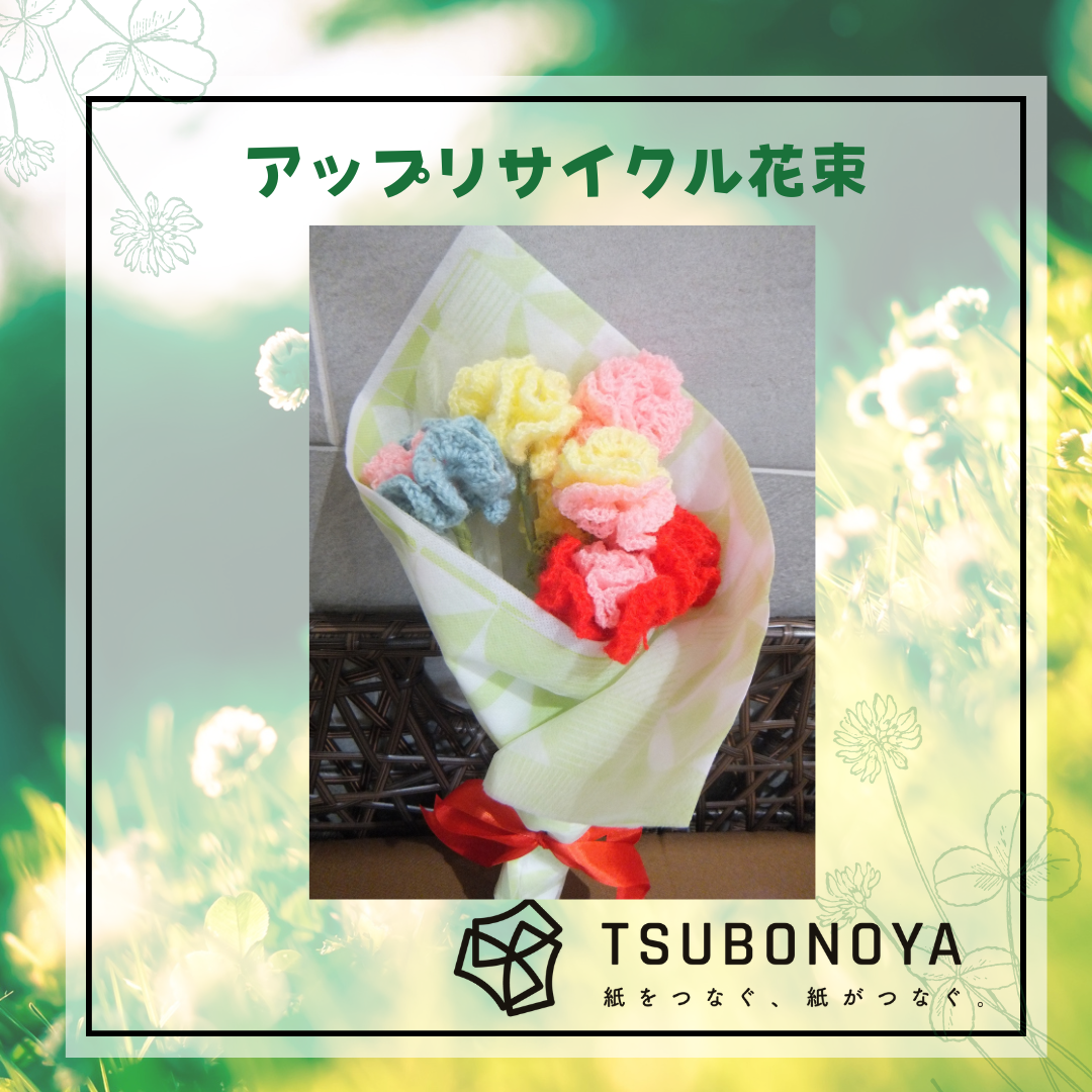 繋がれなかった廃棄毛糸が、制作活動を通じて美しい花束にアップリサイクルされました。