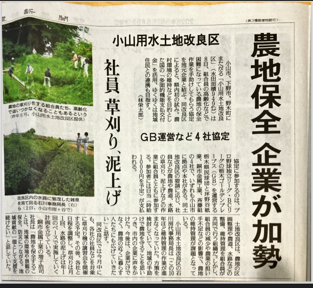 2025.05.08 お知らせ 農地保全への協力に参画したします!! 小山用水土地改良区の保全作業に参画させて頂くことになりました まさしく”住み続けられるまちづくりを”を体現できればと思います~~ お知らせ一覧へ移動